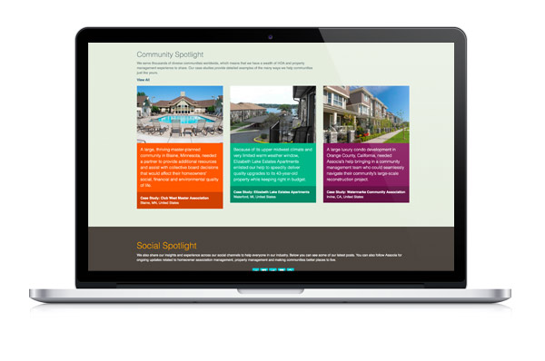 The laptop view has a similar width, but has considerably less height. The Community Spotlight section still displays in a layout like what is seen on the widescreen monitor, but with less extra space along the sides.